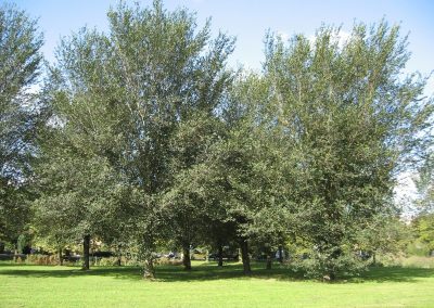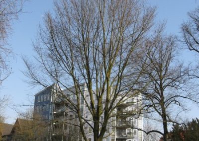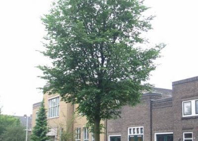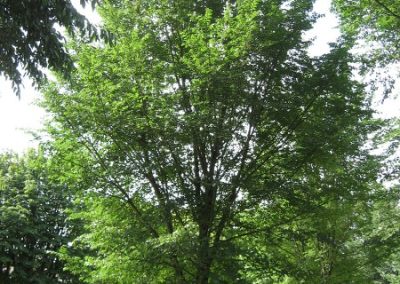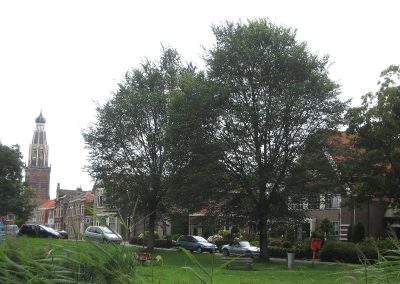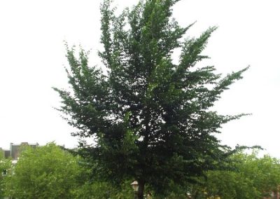 Ulmus ‘Dodoens’ is net als ‘Columella’ een inteeltproduct, met kloon 202 als vader én als moeder. Toch heeft zij een behoorlijke resistentie tegen de iepziekte en een snelle groei. In de jeugdfase pyramidaal opgaand, bij het ouder worden uitbuikend tot een brede iep. De dubbele ‘Exoniensis’ invloed zien we in ‘Dodoens’ op meerdere fronten terug: de donkerbruine eenjarige twijgen met zeer donkerbruine knoppen, het grote donkergroene blad, licht gekroesd (nooit zonder vouw plat te drukken) dat in de loop van de zomer grijze spintplekken vertoont. Maar vooral de sterke neiging tot vergaffelen en de zware gesteltakken onderin de kroon zijn typische ‘Exonienis’ eigenschappen. ‘Dodoens’ is een prachtige parkboom, tevens geschikt als laanboom, maar in het laatste geval moet tijdig worden opgekroond en te dikke takken dienen uit de jeugdkroon worden weggesnoeid.