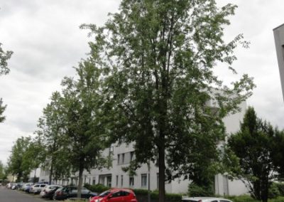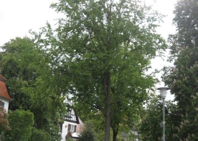 ‘Regal’ groeit breed kolomvormig, met een opvallend open, transparante kroon. Dankzij haar gracieuze verschijningsvorm is ‘Regal’ in buurland Duitsland een veel gebruikte iep.